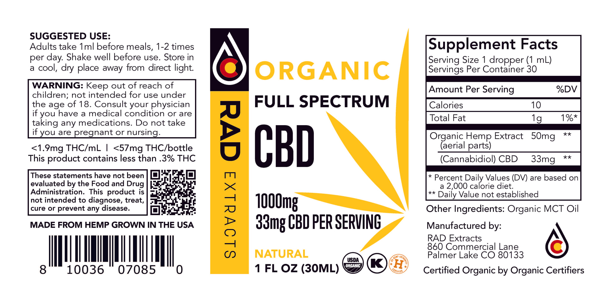 RAD is bringing wholesale CBD prices direct to the consumer. We have been trusted with extracting and manufacturing the highest quality full spectrum CBD products for the last 7 years and wanted to bring a product direct to the consumer. Our goal is to make hight quality CBD affordable for everyone. RAD is USDA Organic Certified, Kosher Certifed and US Hemp Authority Certified so you can be sure that quality is built into our entire process from Seed to Sale. Take advantage of buying directly from the source!