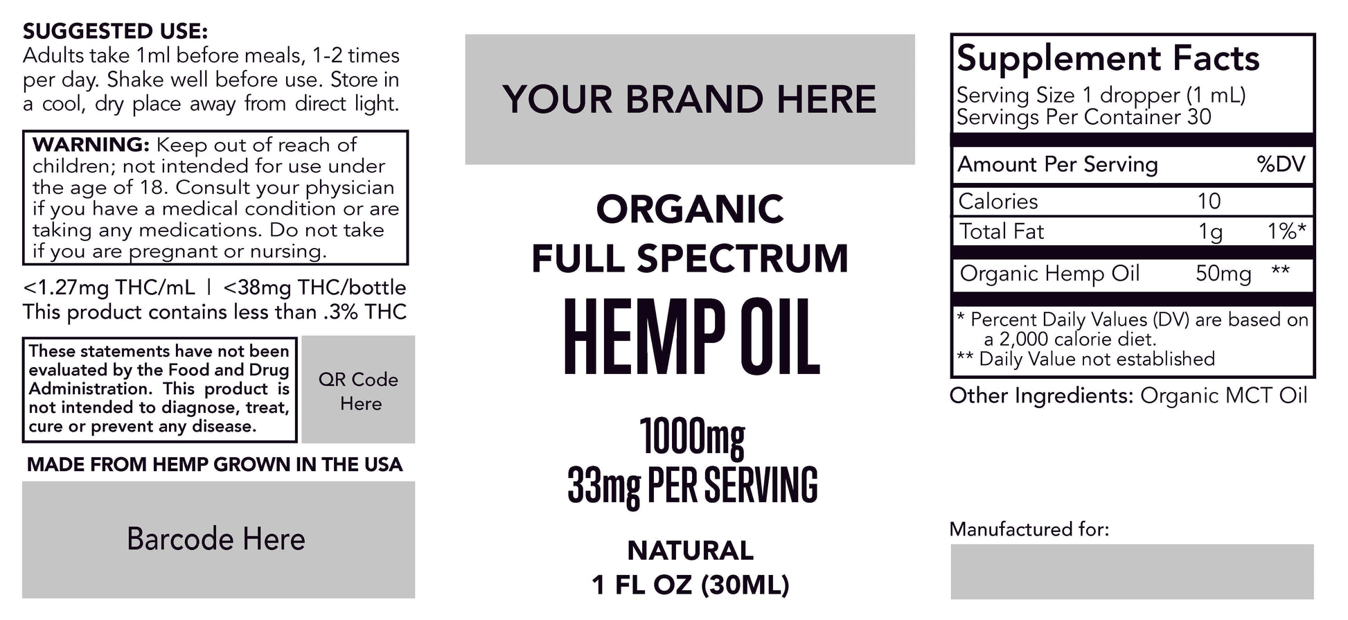 White-Label 1,000mg Organic Certified Full Spectrum CBD Tincture