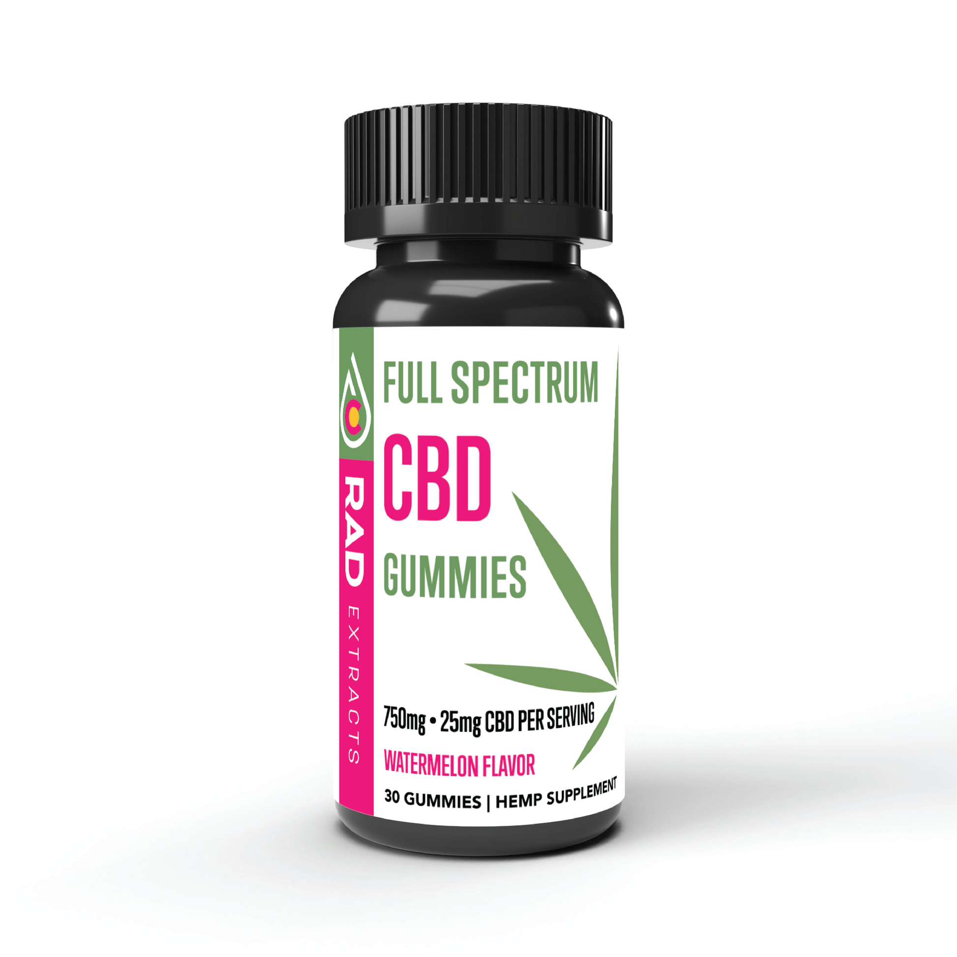 New and approved RAD Gummies! The RAD 25mg gummies are a tasty and easy way to get your daily dose of full spectrum CBD! Our full spectrum gummies are made with only natural ingredients, no nasty high fructose corn syrup, artificial colors or gelatin. They come in Watermelon flavor and we use full spectrum hemp extract to ensure efficacy. These gummies are a tasty and easy way to get your daily dose of CBD. These are 750mg of whole food goodness, without fake sweeteners and flavorings!
