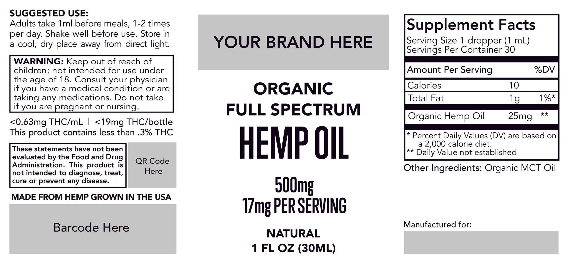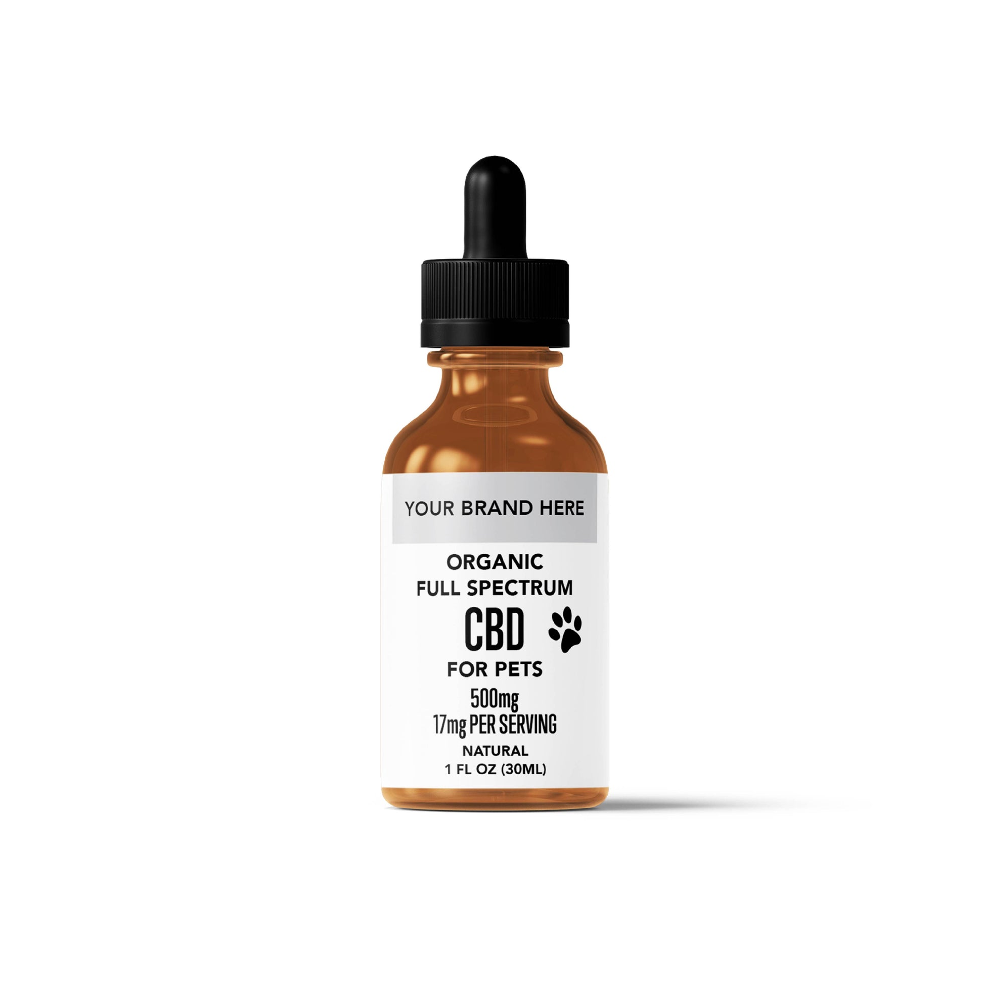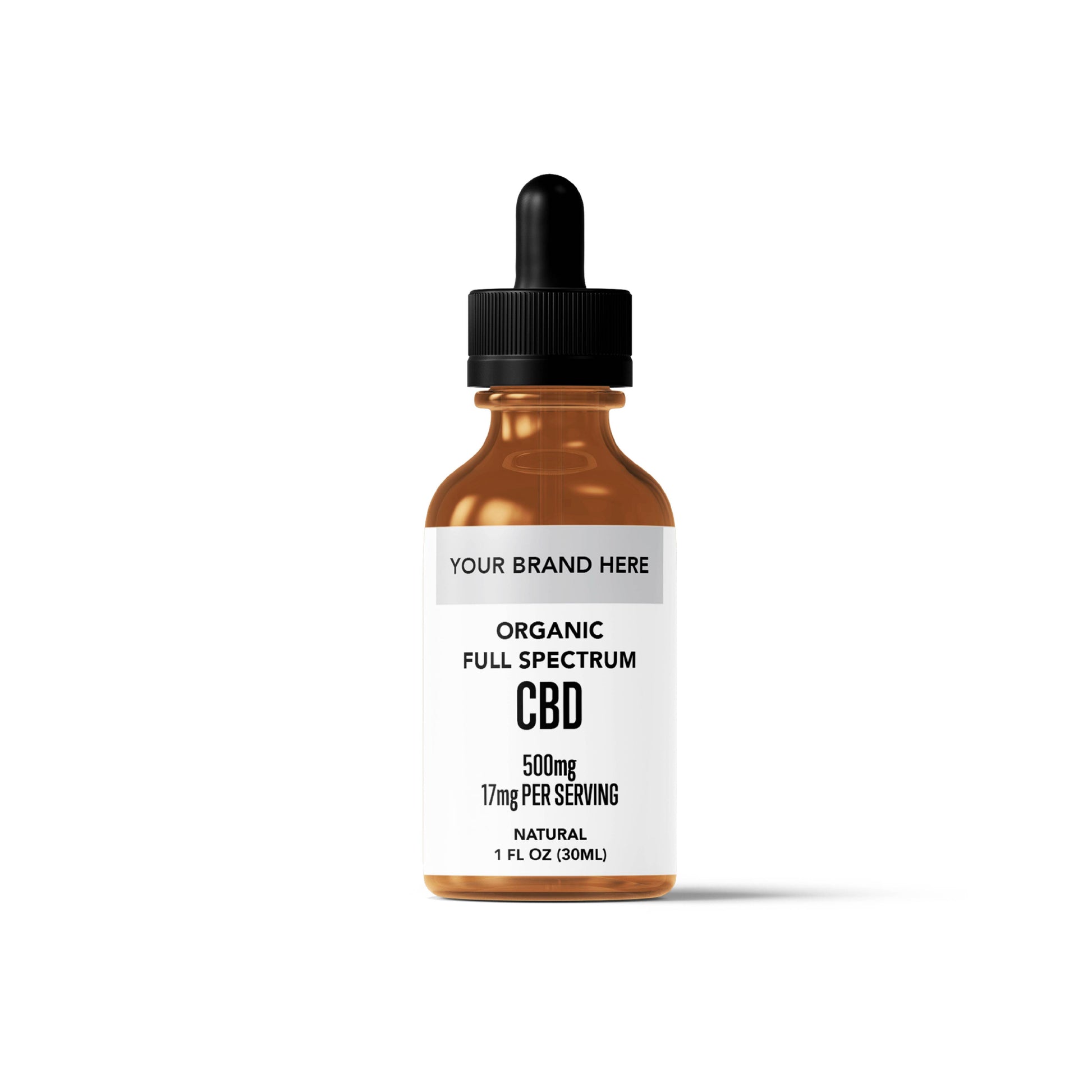 This popular tincture can be used for white-label purposes, supporting your CBD oil business for pets and humans. This bottle comes from our best CBD tincture collection with a 500mg per ounce strength, blended in Organic MCT oil and bottled in amber bottles with black, graduated, child safe lids. RAD has already done the leg work of creating a high quality, effective CBD product, now all you must do is add your label for resale.