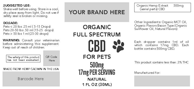 Please note that the label might describe “pet CBD tincture 500mg,” but it is also human-grade oil. For this reason, you can use it yourself or market it to people or customers who want fully organic CBD oil for both themselves and their pets.