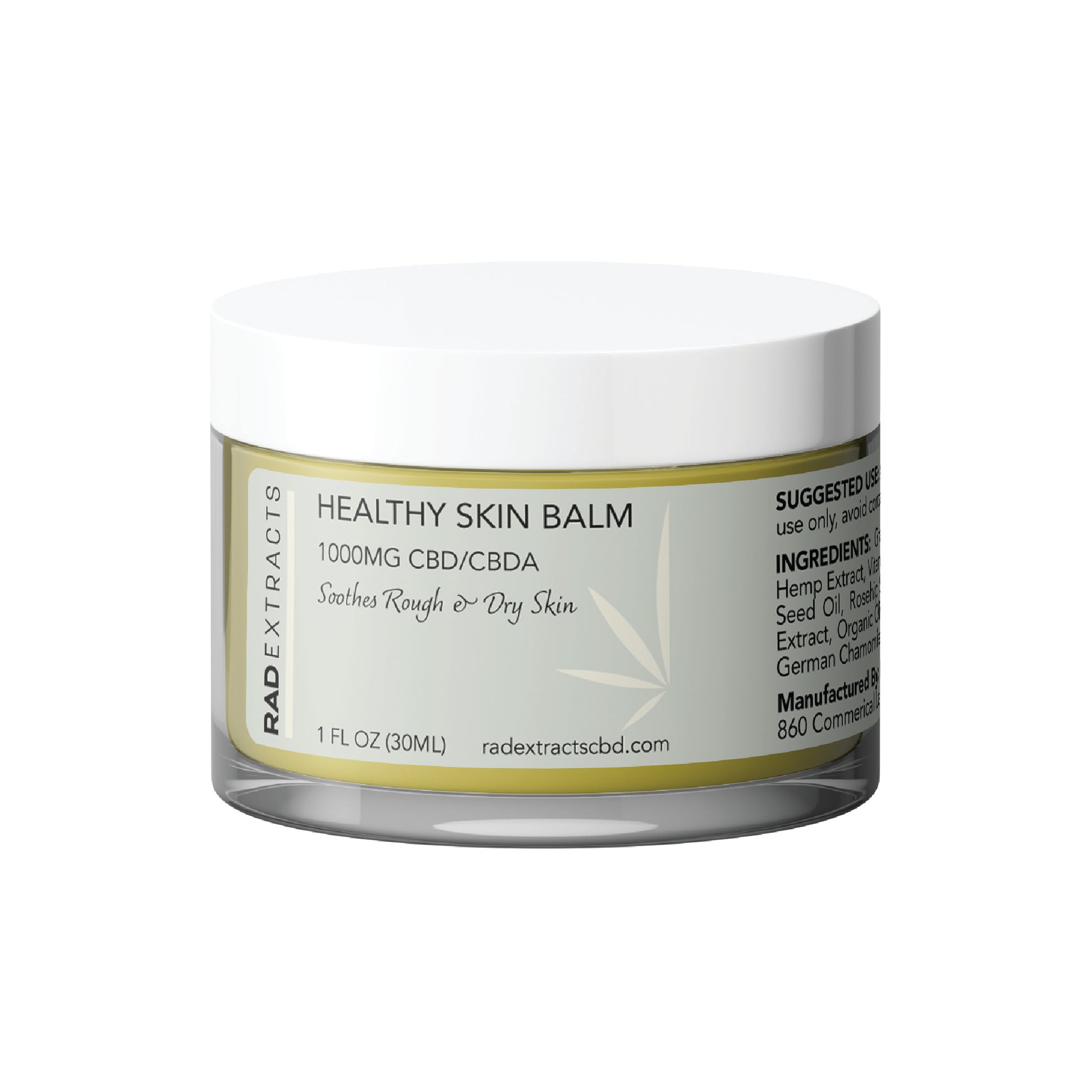 Elevate your skincare routine with the unparalleled potency of our Full Spectrum CBD Healthy Skin Balm, featuring a robust 1000mg CBD balm designed to deeply nourish and protect your skin. This intensively moisturizing balm is a perfect blend of nature's finest ingredients and full-spectrum CBD, crafted to provide immediate relief and hydration to dry, irritated skin. Infused with CBD and CBDa, our balm promotes a healthy skin barrier, reducing the appearance of redness and supporting skin's natural healing process. Ideal for those seeking an all-natural remedy, our 1000mg CBD balm is a testament to RAD Extracts' dedication to purity and effectiveness. Plus, explore our wholesale, white-label, and private-label options to bring the healing power of CBD to your customers.